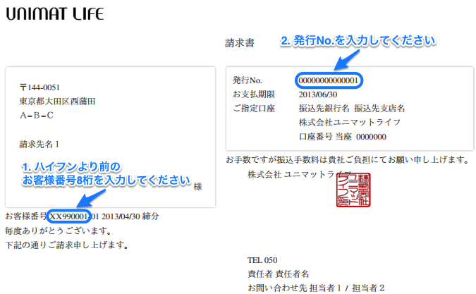 請求書をご用意頂き記入例に沿って入力願います。